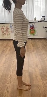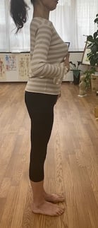 ②クライアントは、猫背が2週間で改善されました。その2週間、毎日指示された運動メニューを自宅でも行っておられました。